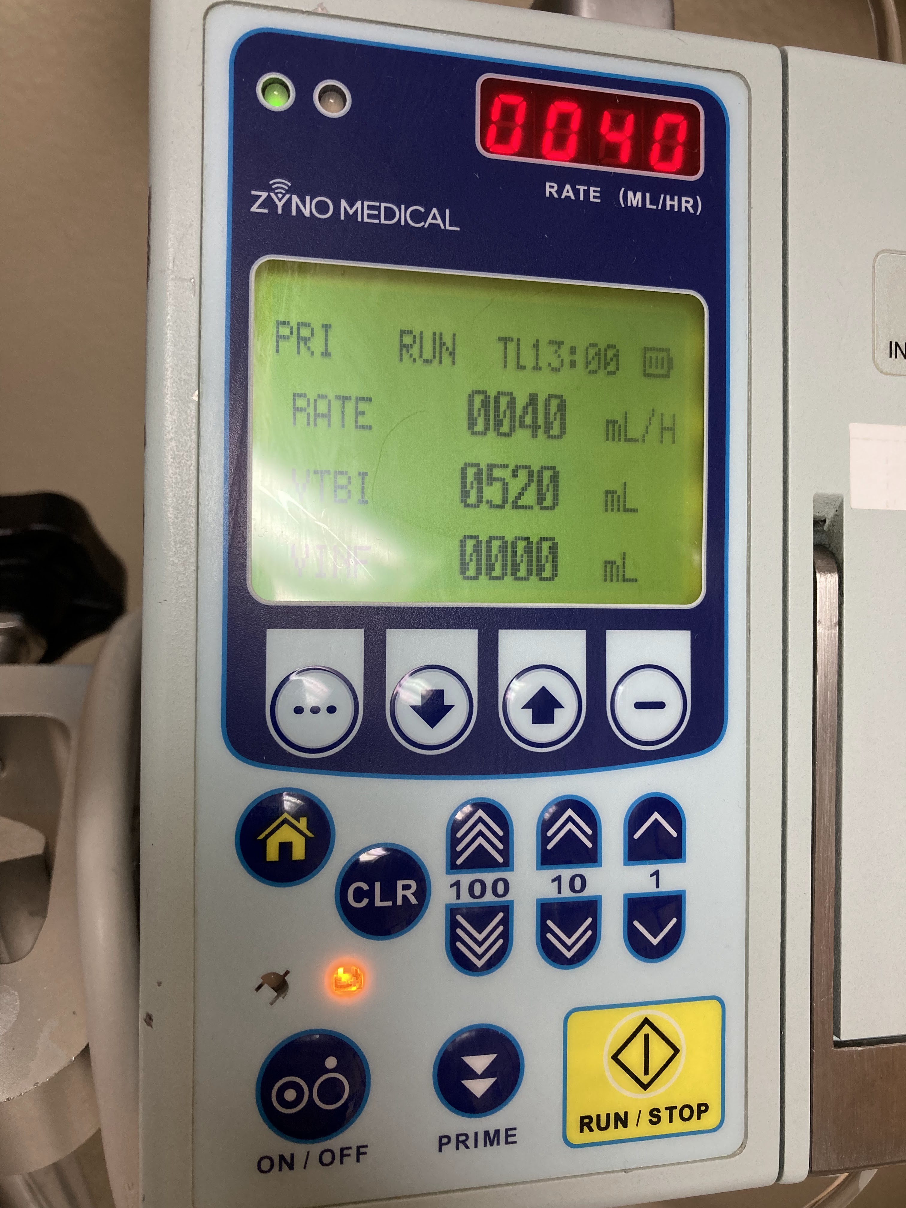 916am Medication started RATE 40ml VTBI 520ml VINF 0ml